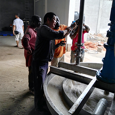 Stirring salt washing machine, salt slurry enters from the upper part into the washing equipment, during the stirring of the blade, the washing liquid there will be strong collision, scouring, mixing, and forming a reverse washing to the salt granule., so that the dirt on the salt surface can be separated with the salt. Salt slurry is drawn out from the pump port on bottom, washing liquid is overflow from the upper side.